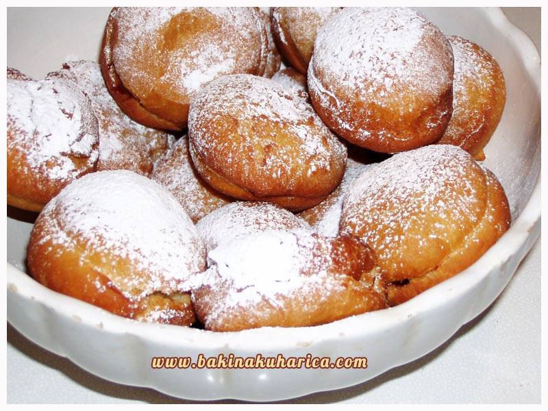 Krafne se veselo kupaju u masnoći, miriši cijela kuhinja zamamnim mirisima. Baka ih vadi šupljikavom žlicom iz masnoće i ostavlja da se malo ocijede. Sa špricom za ukrašavanje torti, koju je napunila “poboljšanim” pekmezom od marelica, puni strpljivo krafnu po krafnu aromatičnim pekmezom.